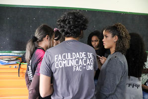 No dia 25 de setembro de 2019, o Centro de Ensino Fundamental 801 recebeu a visita dos extensionistas do SOS Imprensa. Os alunos foram divididos em dois turnos, o primeiro às 14h e o segundo às 16h. Apresentamos o projeto, explicamos o que é transgênicos e fake news e os dividimos em grupos para a realização de um jogo. Ao final, os alunos produziram pequenos textos, que você pode conferir em Produções.